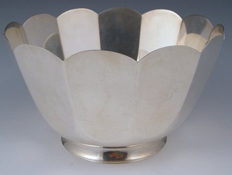 LARGE TIFFANY & CO STERLING BOWL IN BOX: Paneled design. Marked on base Tiffany & Co. Makers Sterling Silver 25047. Comes in custom unmarked suede presentation box. Bowl measures 4 1/4'' high x 7 1/8'' wide. Box measures 6 1/2'' high x 11 1/2'' dia. Approx. 18.2 troy oz.