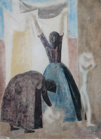CAVIEDES, Hipolito Hildago de, (Spanish, 1902-1994): Washer Women, Mixed Media on Paper/B, 25'' x 18 3/4'', signed, unframed. Several abrasions with some moisture damage.