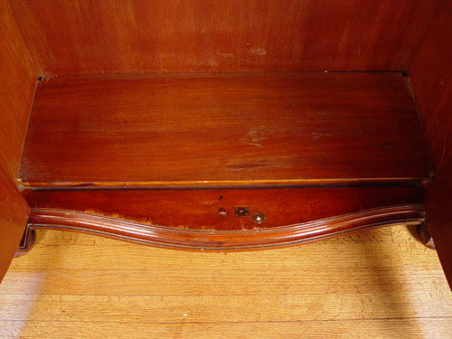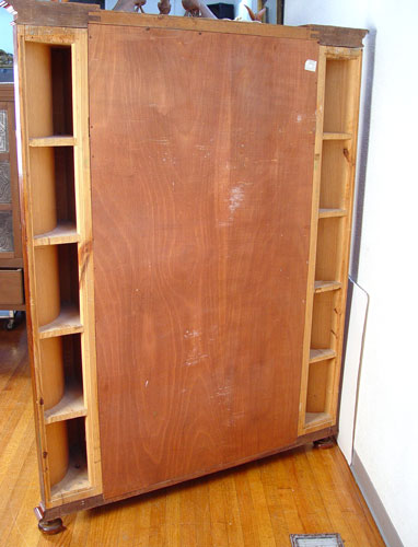 ORNATE FRENCH ARMOIRE WITH GILT WOOD SWANS FORM: Carved and gilt wood scroll foliate, urn, and acanthus leaves across the crest. Swans applied to the double doors. Convex sides. Interior hat shelf and coat pegs. Measures 6' 7'' high x 4' 6'' wide x 17'' deep.