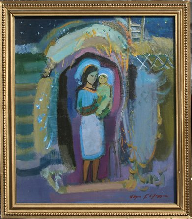 ARMENIAN OIL/C MOTHER & CHILD: 27 1/2'' x 23 1/2'', illegibly signed, framed, 32'' x 27 1/2'', a gift to Dr Bushore-Fallis for volunteer work at an Armenian hospital. From the Collection of Dr. Martha Bushore-Fallis.