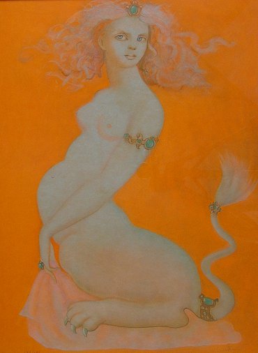FINI, Leonor, (Argentina, 1908-1996): ''Hilaria'', Color Lithograph, 28 1/2'' x 21 1/2'' sight size, signed and numbered 64/75 Roman, expert framing, 35'' x 27'', accompanied by the COA from Jean-Paul Loup. A rare piece, from the Collection of Dr. Martha Bushore-Fallis.
