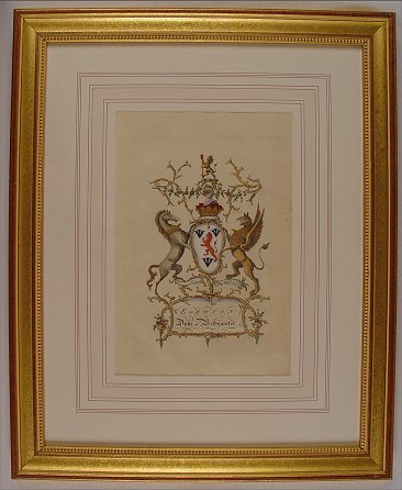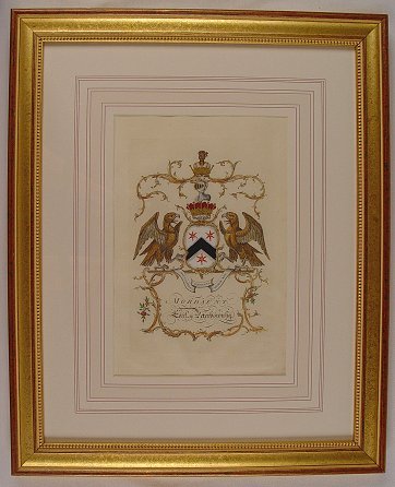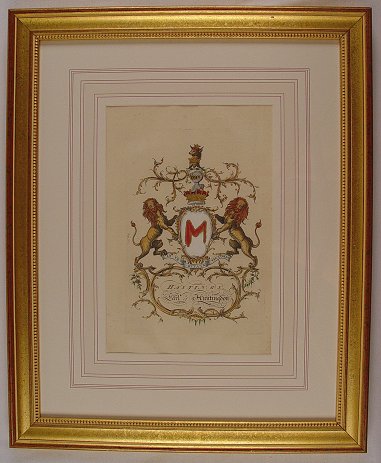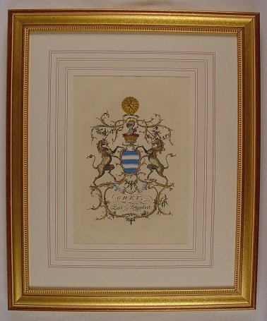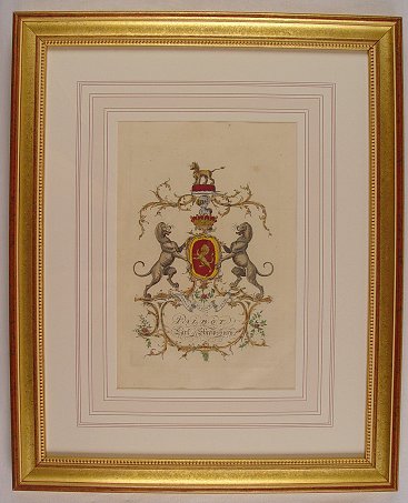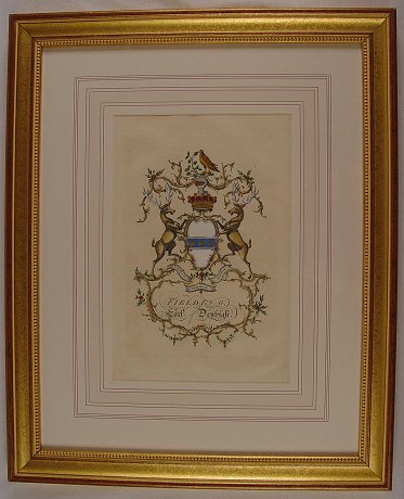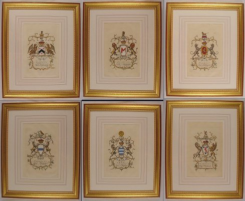 6 H.C. ENGRAVINGS OF HERALDIC CREST BY JACOBS, 1768 LONDON, 12'' x 8'', matching frames.