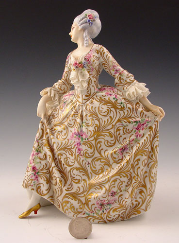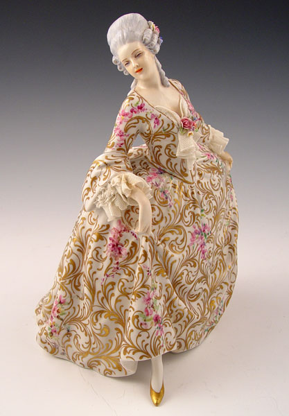 FABRIS ITALIAN PORCELAIN DANCING FIGURE: Intricately painted gown and coiffure, 10''h.