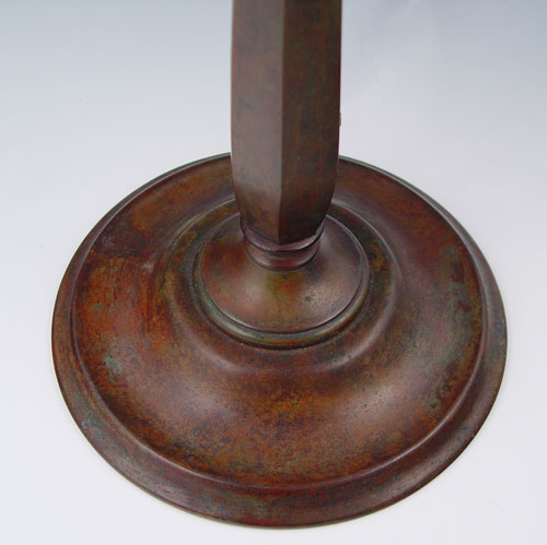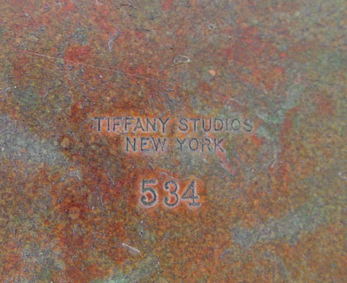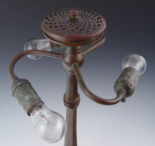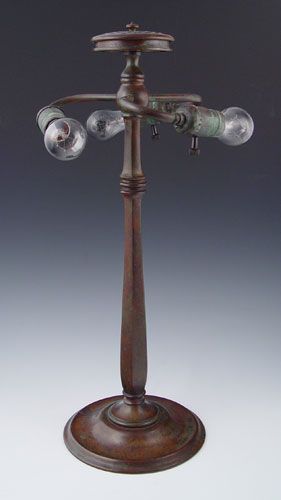 TIFFANY STUDIOS BRONZE LAMP BASE: # 534, Three socket, appears the sockets and heat cap may have been replaced. 8'' dia. at the base. 22''H. overall. The base is stamped Tiffany Studios New York 534.