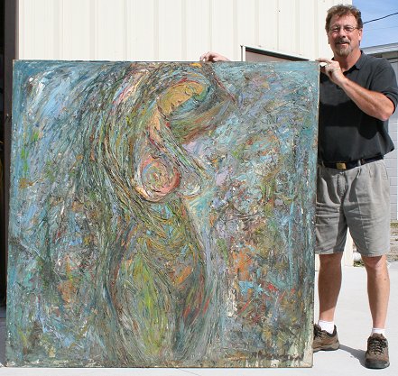 AMUNDSEN, R?,: Female Nude, OIL/C, 60'' x 60'', unframed. Several pinholes, spots of missing paint, very heavy impasto, needs cleaning.
