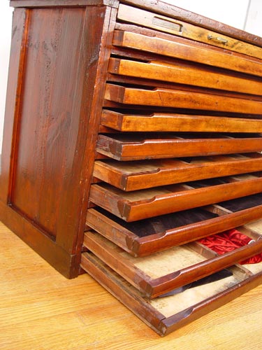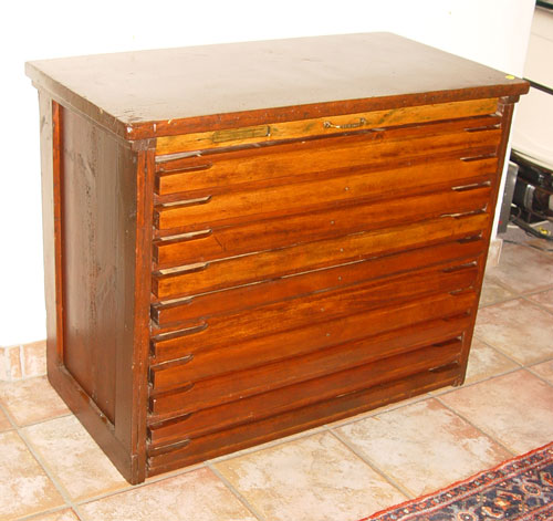 WATCH MAKERS 11 DRAWER CABINET: ''Keystone'' on top drawer pull. Measures 29 1/2'' high x 37 1/4'' wide x 19 1/4'' deep.