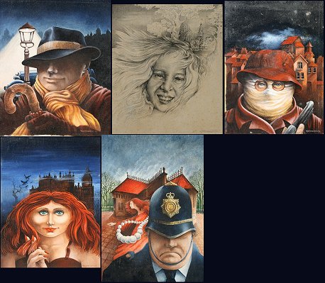 HENDRICKS, Tejo, (Dutch, 20th C.): 5 Illustrations, (1 Pencil, 4 Oils), mostly in the 13'' x 10'' range, most signed and dated 70's & 80's. Abrasions, needs cleaning, sold as is.