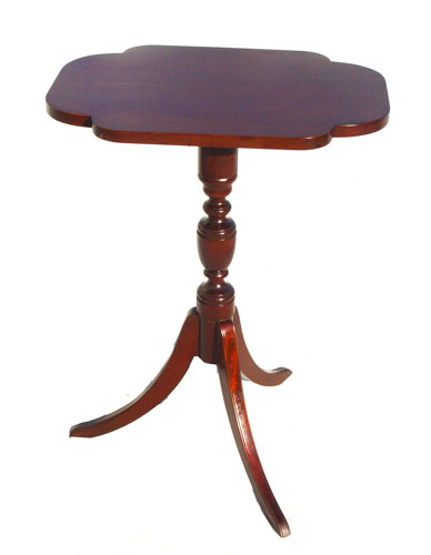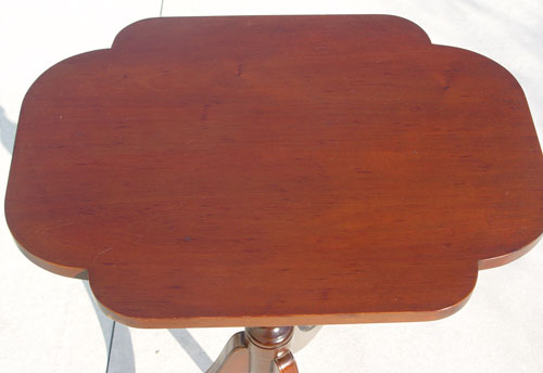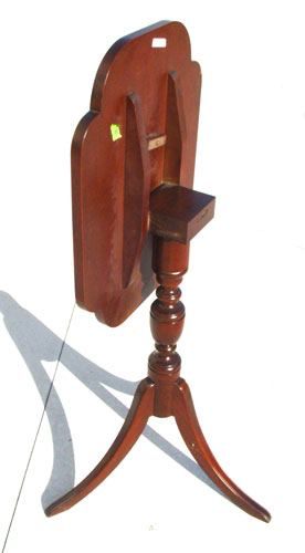 BIGGS MAHOGANY TILT TOP TEA TABLE: Measures 30'' high x 22'' wide x 16'' deep top. 20'' base.