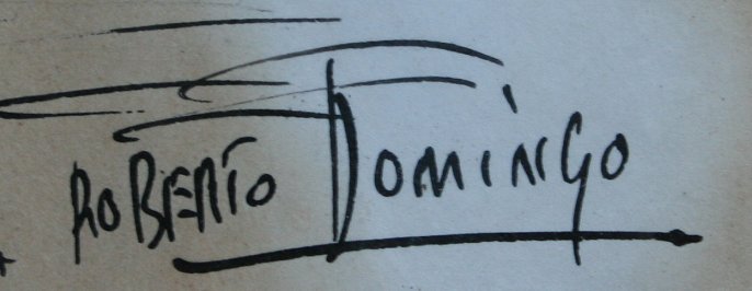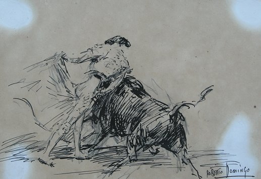 DOMINGO FALLOLA, Roberto (Spain, 1883-1956): Bullfighter, Pen & Ink, 5 3/4'' x 8 1/4'', signed, framed, 10'' x 13''. Browned paper, bleached spots in corners from glue.