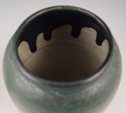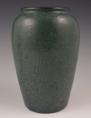 HAMPSHIRE POTTERY VASE: 7'', orange peel type glaze, incised marks.