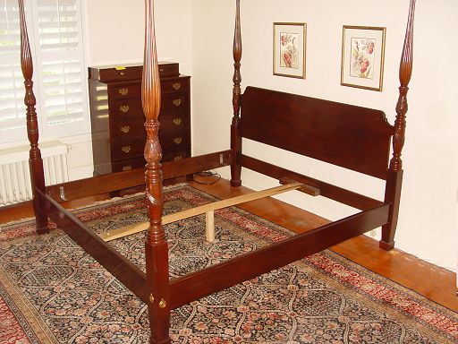 CONTEMPORARY CHIPPENDALE STYLE MAHOGANY POSTER BED: King size with canopy. All in sound condition.