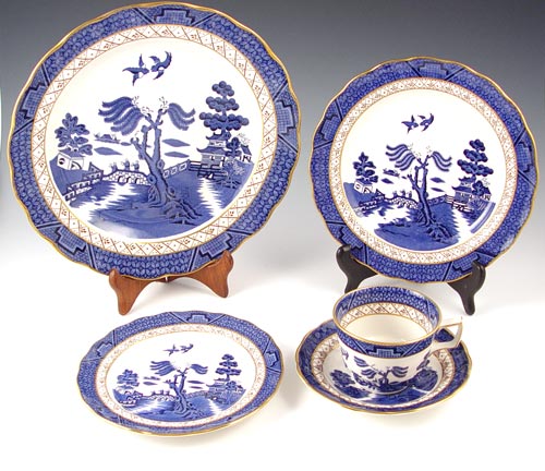 ROYAL DOULTON BOOTHS REAL OLD WILLOW CHINA SERVICE FOR 8: From the majestic Collection. 44 pieces to include 8 each of dinner plates (10 1/8'' dia.), salad plates, bread plates, dessert bowls and 9 cups with 9 saucers.