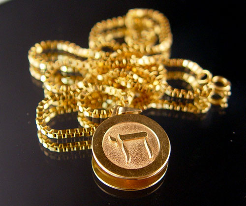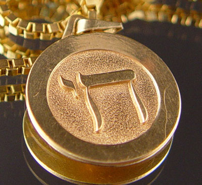18K GOLD MIRROR BOX CHAIN NECKLACE WITH JEWISH CHARM PENDANT: 18k yellow gold 22'' chain, 12.9 grams. The 14K yellow disc pendant is 2.3 grams. 15.2 total grams.
