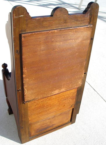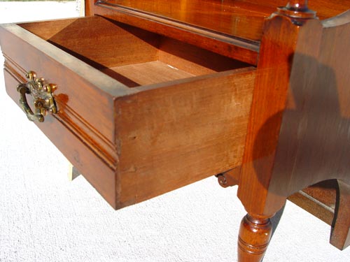 DIMINUTIVE WALNUT CHILDS VANITY / JEWELRY BOX: Bevel mirror over single drawer. Measures 23 1/4'' high x 12'' wide x 8 3/4'' deep.