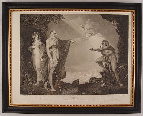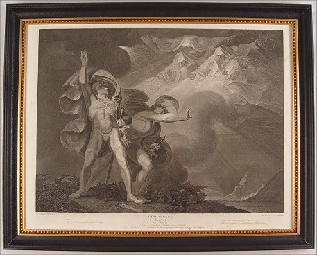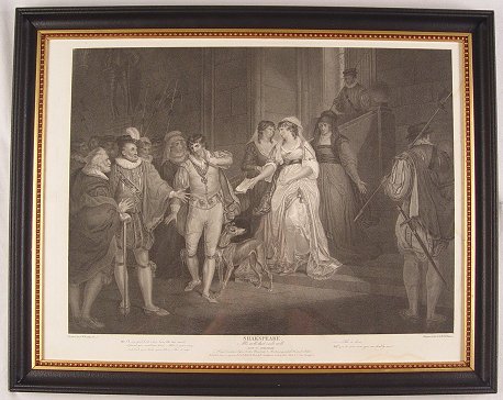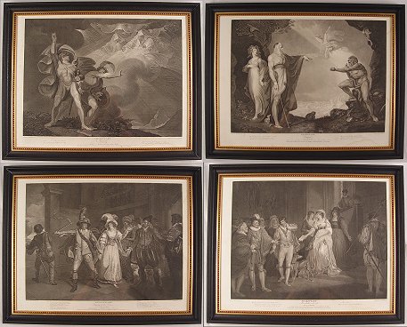 4 B & W ENGRAVINGS FROM JOHN BOYDELL'S ''DRAMATIC WORKS OF WILLIAM SHAKESPEARE'' CA. 1798 LONDON: 24'' x 18'', matching frames.