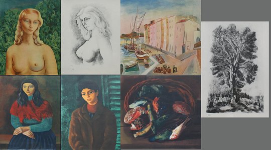 7 LITHOGRAPHS AFTER KISLING: 27'' x 23'' (23'' x 27'') with matching framed, blind stamp with pencil numbering.