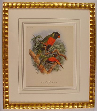 6 COLOR LITHOGRAPHS OF PARROTS AFTER MIVART: 11 1/2'' x 9'', matching frames.