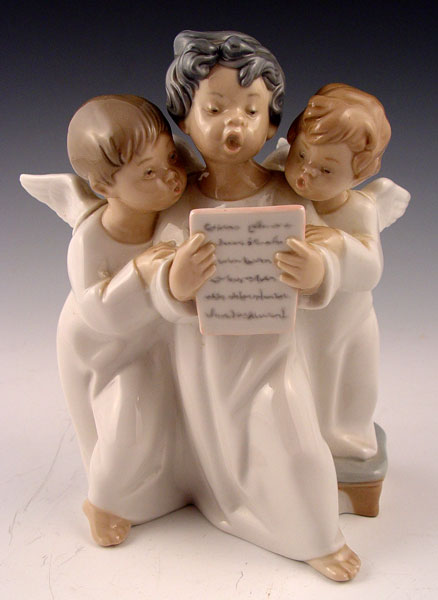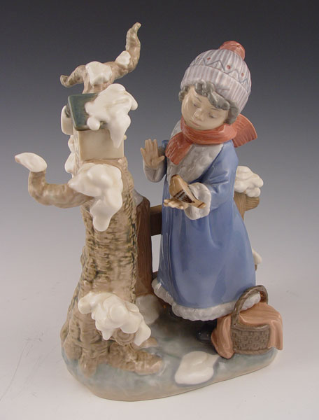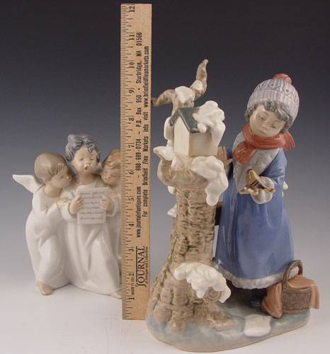 PAIR OF LLADRO IN ORIGINAL BOXES 4542, 5287: 1) #4542 Group of Angels. Measures 7'' high. 2) #5287 Winter Frost, Girl at Birdhouse. Measures 10'' high. Both mint with original boxes.