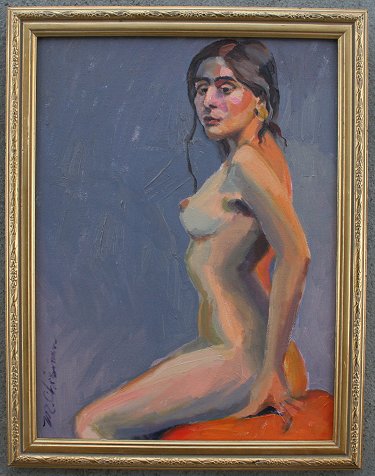 CHRISMAN, Michelle, (American, 20th C.): Female Nude, OIL/CB, 16'' x 12'', signed, framed, 18'' x 14''.