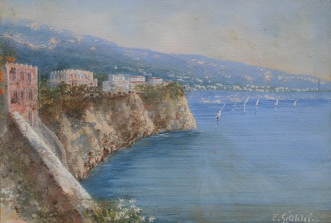GIANNI, E., (Italian, 19/20th C.): Coastal Scene of Naples, W/C & Gouache, 9'' x 13'', signed, embossed gilt frame, 18'' x 23''.