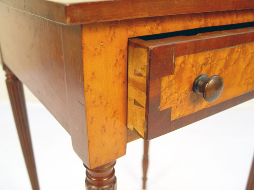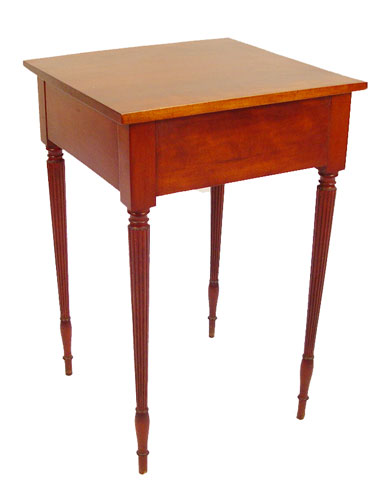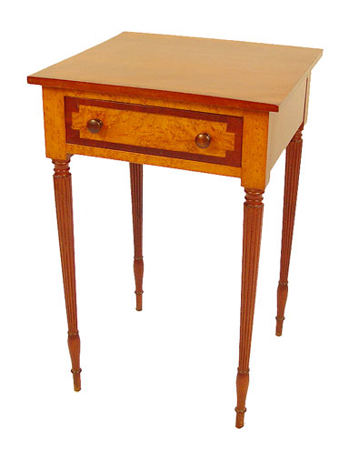 FINE NEW YORK STATE FEDERAL ONE DRAWER STAND: One drawer cherry stand with bird's-eye maple front, drawer, banded in cherry. Reeded legs, arrow feet. 27 1/4'' high X 18'' wide'' X 17 3/4'' deep.