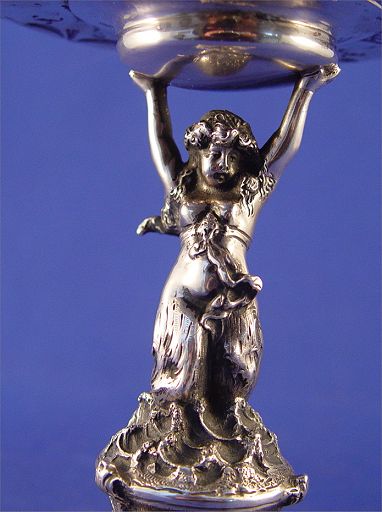 FINE FRENCH SILVER MERMAID FIGURAL COMPOTE: Reticulated and highly detailed repousse bowl on a mermaid figural base. Paris hallmarks. 6 1/2''h, 7 3/4''dia., approx. 15.03 oz.