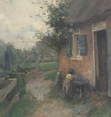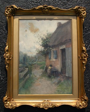 OFFERMANS, Tony, (Dutch, 1854-1911): Village Scene with Peasant Girl, W/C, 11'' x 15 1/2'' sight size, signed, period gilt frame, 21'' x 17''.