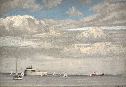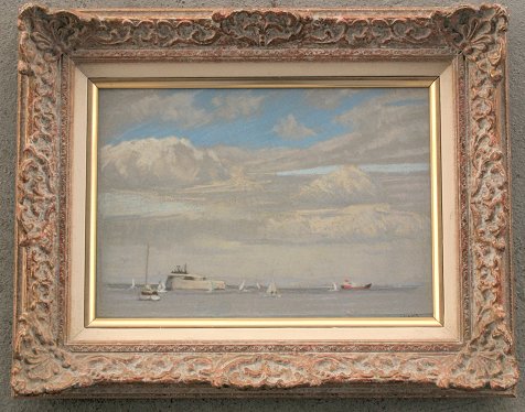 INNES, William Henry, (British, 1905-1999): ''Solent Fort'', Pastel, 9'' x 13'', signed, titled verso, gessoed frame, 15'' x 19''. Est. $500/800**