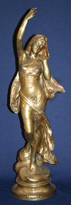 LEVASSEUR, Henri Louis, (French, 1853-1934): ''Vers l'Infini'', Bronze, 37 1/2'' H., titled, Hors Concours plaque affixed, was wired to be a lamp.
