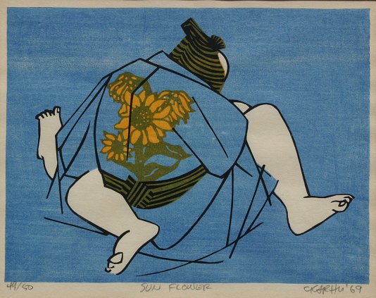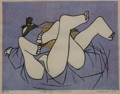 KARHU, Clifton, (American,1927-): Pair of Erotic Woodblocks, ''Sun Flower'', and ''Chrysanthemum'', 8 1/4'' x 10 1/2'' sight size, pencil signed, titled and numbered 45/50, dated '69, matching fine frames, 14'' x 15''.