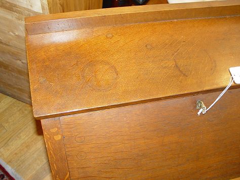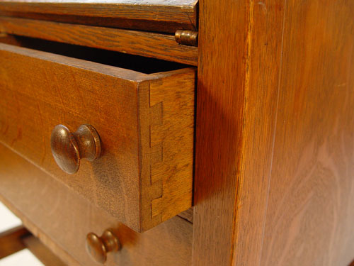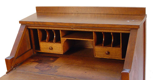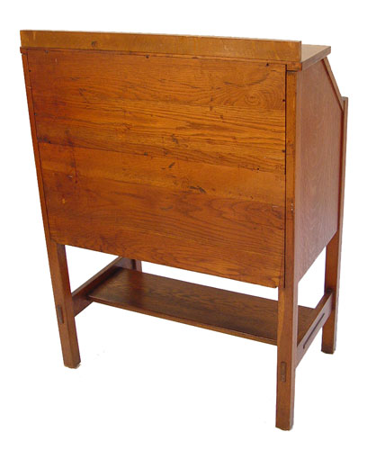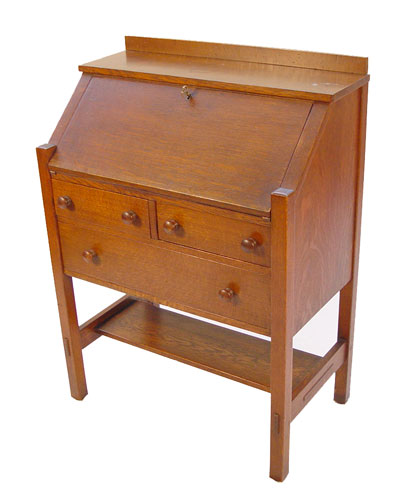 L & JG STICKLEY OAK DROPFRONT DESK: Signed with decal ''The Work of L & JG Stickley''. Ca 1912 - 1918, 40''h x 29 1/2'' x 16 1/2''