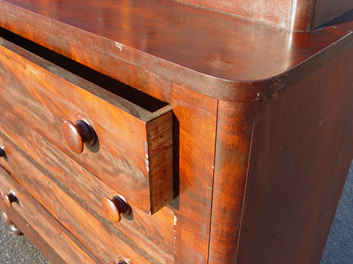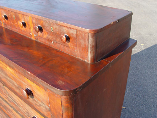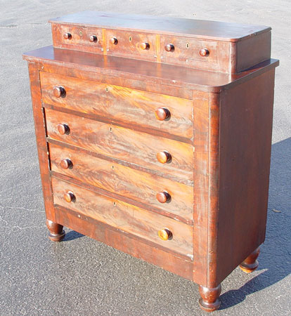 EMPIRE PERIOD MAHOGANY CHEST: Three over four drawer case with bun feet, 46''h. x 43''w. x 19''d.