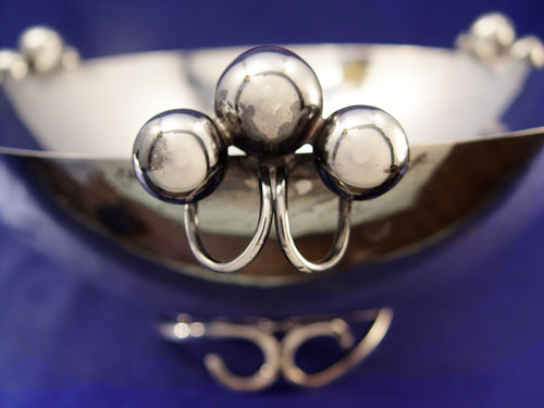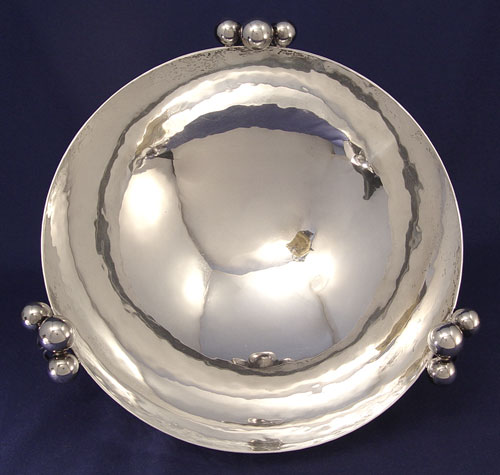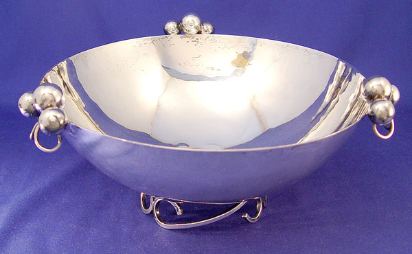 SCIARROTTA STERLING SILVER BOWL FOR BLACK STARR & GORHAM: Danish cherry motif, open scroll pedestal. Made for Black Starr and Gorham. 10 1/4'' dia x 4 1/2''h. Approx. 35.33 ozs.