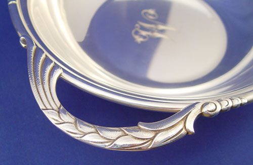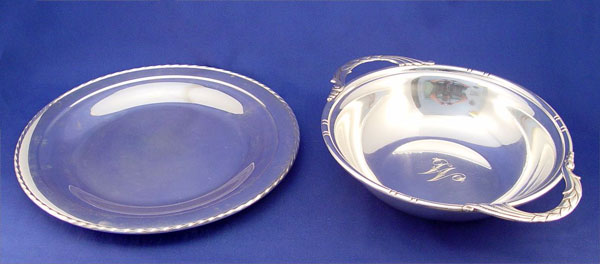 TOWLE STERLING TRAY AND LARGE RANDAHL STERLING BOWL: The Towle tray measures 13'' dia., approx. 16.3 oz. The Randahl bowl is 13 1/2'' dia. including the open handles, 2 1/2''h., approx. 26.19 oz. , monogrammed ''W''.