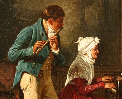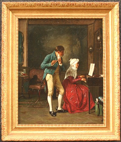 19TH C. PAINTING, ''MAKING MUSIC'': Oil/C, 18'' x 14 1/2'', no visible signature, gilt frame, 22 1/2'' x 19''.