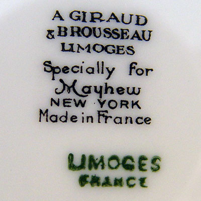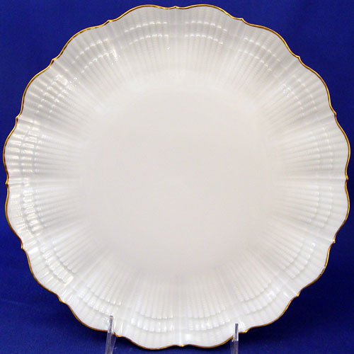 FRENCH LIMOGES FINE CHINA SERVICE FOR 12: 108 pieces to include 12 each of 10'' dinner plates, luncheon plates, salad plates, cups, saucers, cream soups and underplates, 13 bread plates, cream pitcher, covered sugar, and a 13'' platter. By Giraud & Brousseau for Mayhew NY. Fine translucent white china with scalloped edge and gold rim.