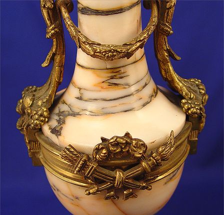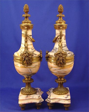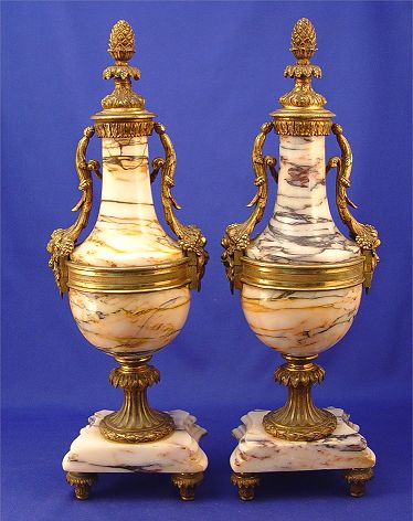 PAIR LOUIS XVI STYLE MARBLE & BRONZE DORE' CASSOULETTES: Bronze and carrera marble, early 20th C., 19 1/2''h. Est. $600/800**