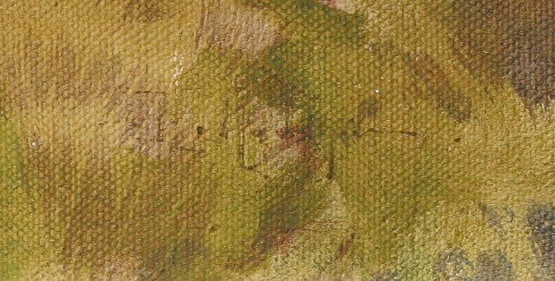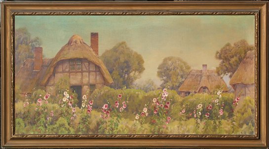 DYER, Hezekiah Anthony, (American, 1872-1943): Landscape with Cottages, W/C on canvas, 24'' x 48'', signed, original gesso frame, 30'' x 54''. Est. $800/1200**