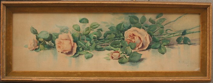 SMILLIE, Nellie Sheldon Jacobs, (American, 1854-1926): Still Life of Roses, W/C, 10 1/2'' x 33 1/2'', signed, period frame, 14 1/2'' x 37 1/2''. Several small spots of foxing/darkening. Est. $600/800**