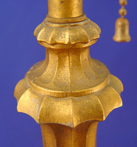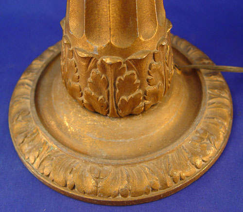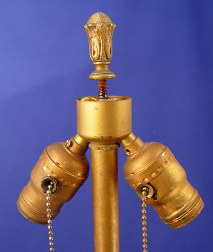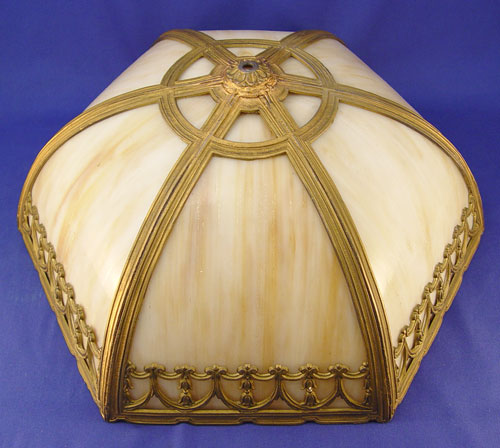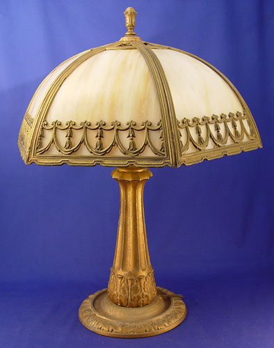 SIGNED MILLER SLAG GLASS TABLE LAMP: Caramel slag glass bent panel lamp, 21''h. x 14''dia. shade.