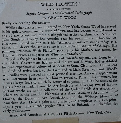 WOOD, Grant, (American, 1892-1942): ''Wild Flowers'', Color Lithograph, AAA publisher, unframed, 11 3/4'' x 16'', pencil signed. Est. $1200/1800**