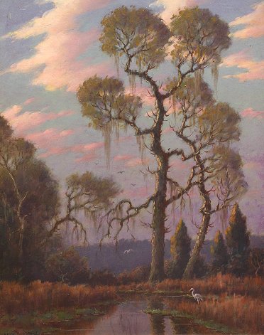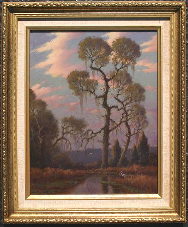 MOORE, Benson Bond, (American, 1882-1974): ''Evening, Tallahassee, Florida'', O/B, 14'' x 11'', signed, titled verso, numbered 263, dated 1953, framed, 15'' x 18''.