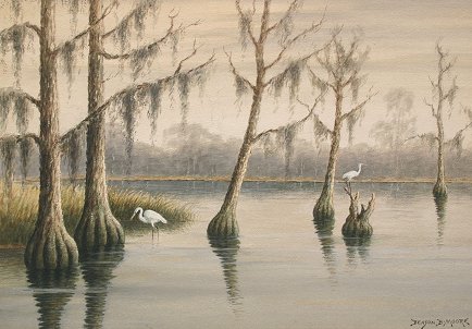 MOORE, Benson Bond, (American, 1882-1974): Florida Swamp with Egrets, W/C, 11'' x 15 1/2'' sight size, signed, framed, 20'' x 24''.
