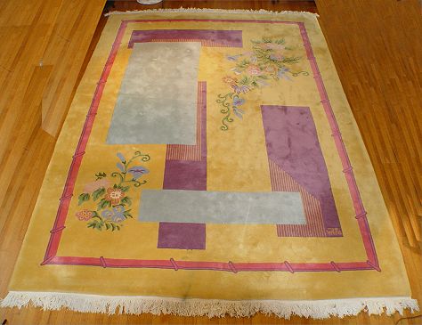 CHINESE NICHOLS CARPET: Unusual asymmetrical design, approx. 9'11'' x 14'3''.