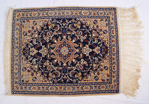 HANDMADE QUM MAT ORIENTAL CARPET: 28'' x 21 1/2''
