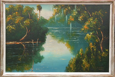 BUCKNER, George, (American, 20th C.): Highwaymen River Landscape, Oil/Upson, 24'' x 36'', signed, framed, 26'' x 38''. Est. $800/1200**