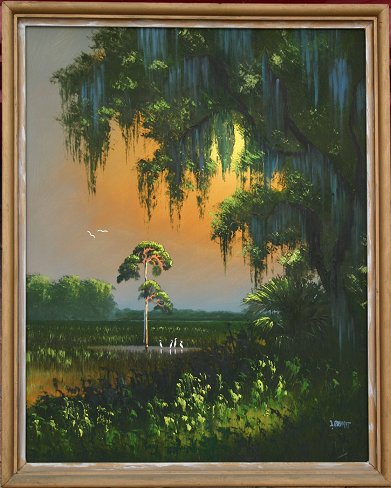 ROBERTS, Livingston, (American, 20th C.): Highwaymen Swamp Scene, Oil/B, 30'' x 24'', signed, framed, 32'' x 26''. Est. $700/900**