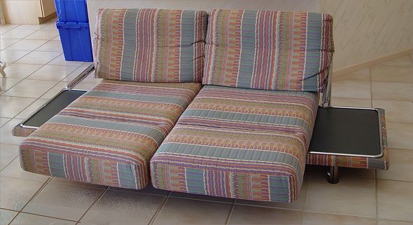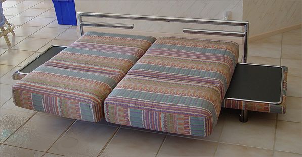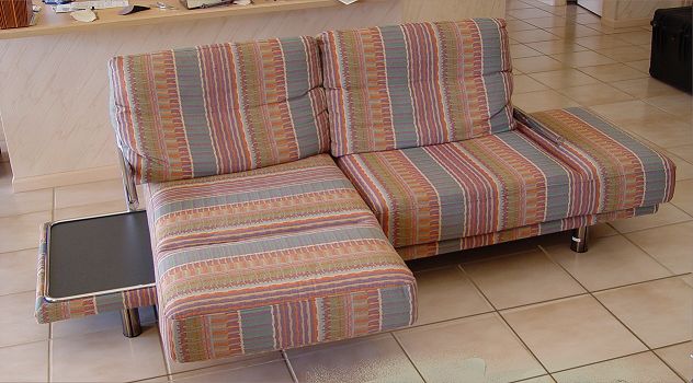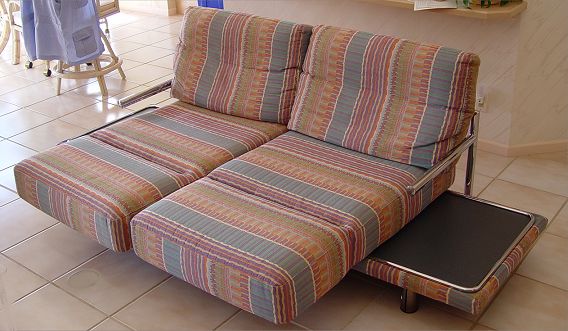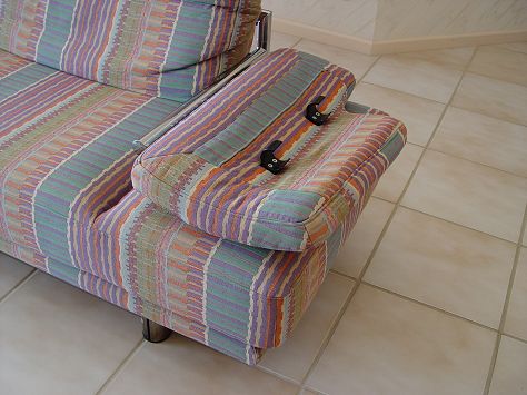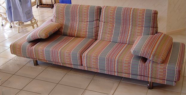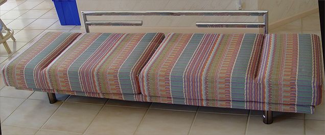 ROCHE BABOIS CONVERSION SOFA: Tubular chrome frame. Converts from L shape to straight sofa, removable arm and back cushions. The base is 100'' long X 30'' wide.