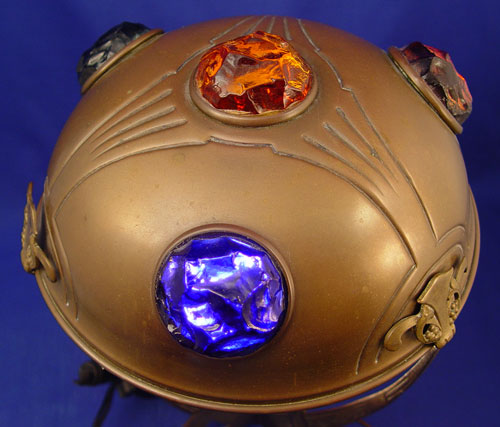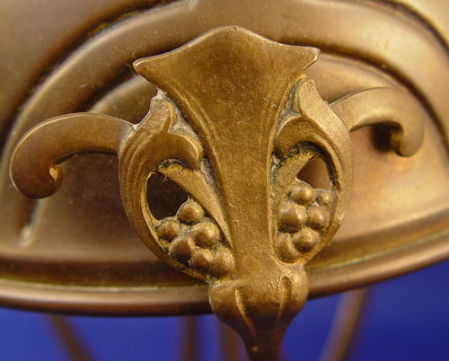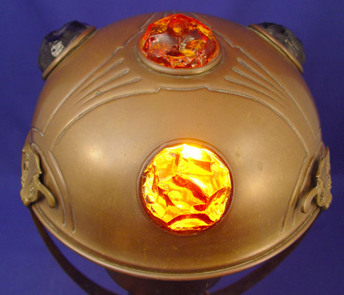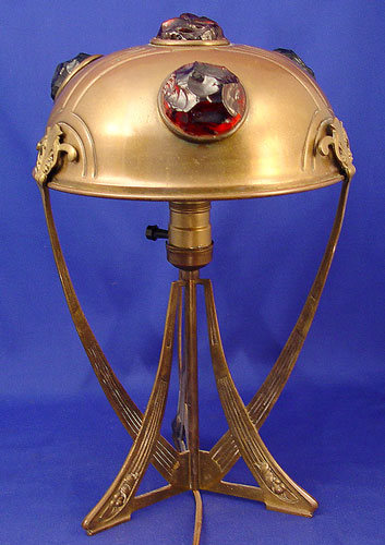 ARTS & CRAFTS / DECO BRASS LAMP: Transitional lamp with bowl shade set with molded plastic. 16'' high, the shade is 10'' dia.