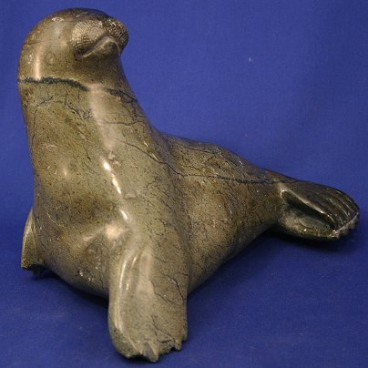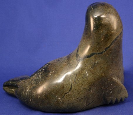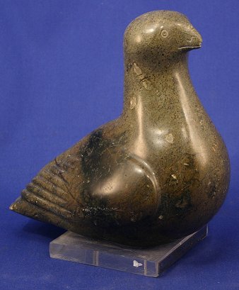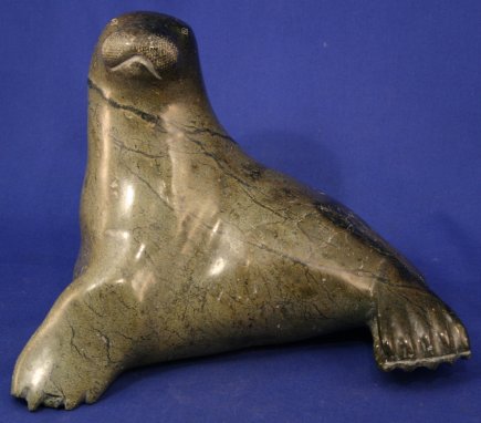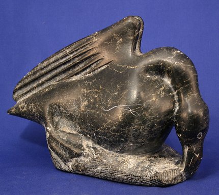 3 INUIT CARVINGS INCLUDE (1)POLISHED STONE BIRD CARVING: 6 3/4'' x 7'', signed, probably Oomagajuk /Omar/ Oomargajuk TIKIVIK, from Kimmirut born 1921. Minor wear. (2)PITSIULAK, George, (American, 1929-): Inuit Seal Carving, Polished Stone, 6 3/4'' x 9 1/2'', Canadian government certificate affixed. Some wear. (3)INUIT SOAPSTONE WATERFOWL CARVING: 6 3/4'' x 11 1/2'', signed, probably Daniel Simaotik (Inukjuak, 1907 - 1968). Some wear. Est. $400/600**